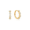 14k Yellow Gold White Sapphire and Light Blue Topaz Huggie Hoop Earrings