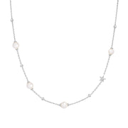 Silver Pearl and Star Station Necklace