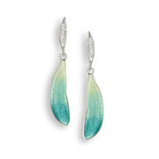 Sterling Silver Blue and Green Enameled and White Sapphire Dragonfly Wing Earrings