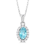 10K White Gold 0.07ct. Diamond and 5x3mm Oval Aquamarine Pendant on 18" Chain