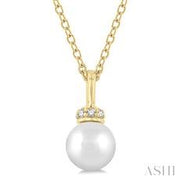 Yellow Gold Pearl and Diamond Necklace on an 18" Chain