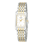 - White dial with gold-tone Roman numerals, stick indices, three hands