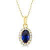 10K Yellow Gold Oval Cut Sapphire and Diamond Necklace (0.07) - 18" Chain