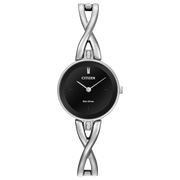 These sophisticated Citizen® Silhouette Bangles feature a classic design in stainless steel and clean silver dial with lines that are sleek, simple and timeless. Featuring our Eco-Drive technology – powered by light, any light. Never needs a battery.