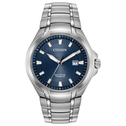 Make a statement with this bold Super Titanium™ CITIZEN Paradigm watch with classic gray dial. Features on this 3-hand model include luminous hour and minute hands and markers, along with a date indicator and sapphire crystal. Featuring our Eco-Drive technology – powered by light, any light. Never needs a battery.