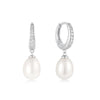 Silver Freshwater Pearl and White Cubic Zirconia Pav� Drop Huggies